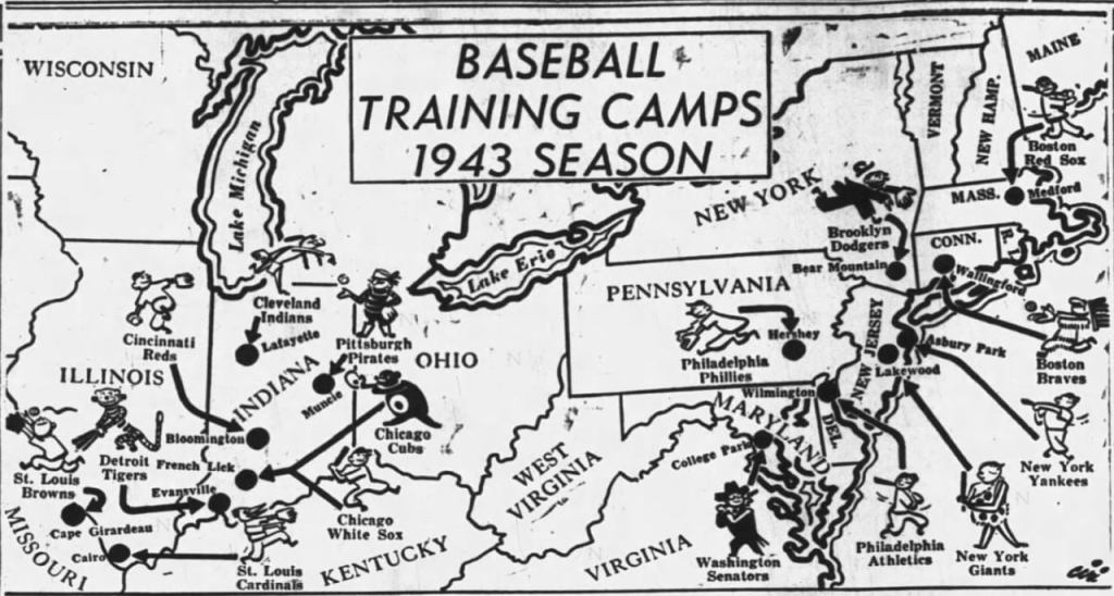 A war-time silver lining emerged for Daddy when the Cardinal owners decided to hold training camp in Cairo due to fuel and travel restrictions (not only that, but the St. Louis Browns practiced in nearby Cape Girardeau, Missouri). For two glorious spring training seasons (1943-44) there’s no doubt my father was one of many who watched the Cardinals practice right there in town.  Fans like my dad must have burst at the seams with pride when they won the Series AGAIN in 1944. The Cardinals might have had “St. Louis” in their name, but they were definitely Cairo’s team, too.